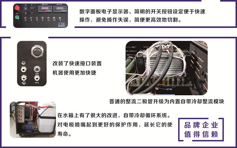 4.自帶冷卻水箱;整流模塊同時也自帶冷卻;經(jīng)久耐用,提供生產(chǎn)效率;更提高了電極噴嘴的使用壽命。